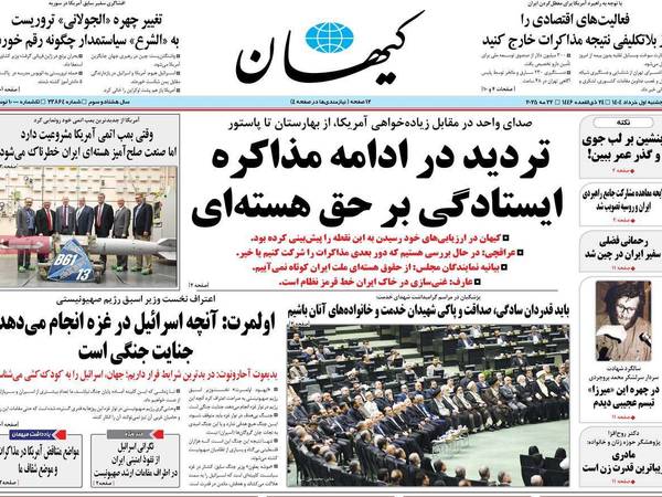 فيما قالت صحيفة "آكاه" الأصولية، إن إيران ألقت الكرة في ملعب أميركا بمزيج من الصلابة (الإصرار على حق التخصيب) والمرونة (الاستعداد للشفافية مقابل رفع العقوبات). مشيرة إلى أن حل هذه الأزمة يتطلب إجراءات متبادلة تتضمن رفع العقوبات، وتعزيز التعاون مع الوكالة الدولية للطاقة الذرية.
