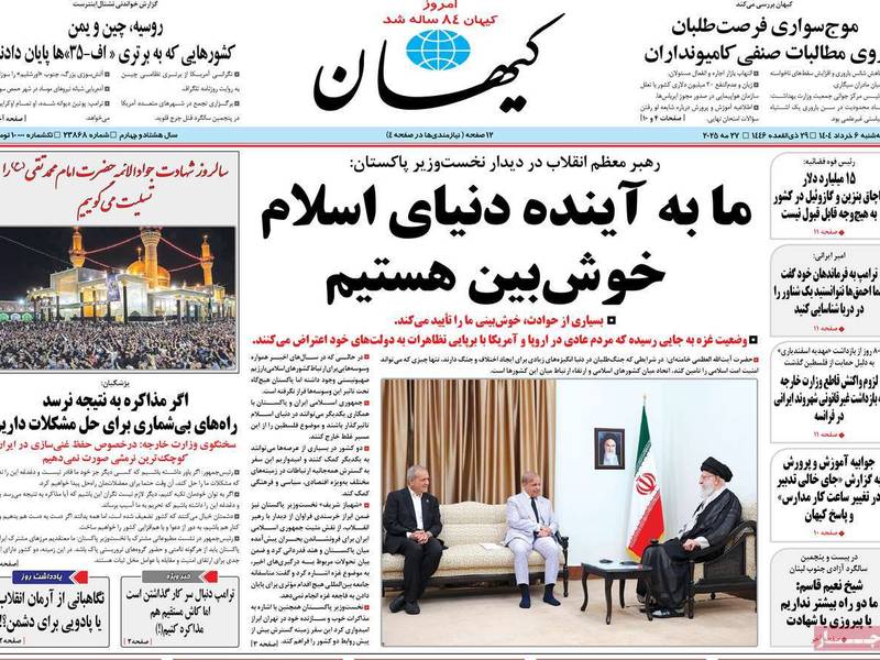 واهتمت الصحف بتصريحات شهباز شريف رئيس الوزراء الباكستاني، بشأن دعم بلاده الكامل لحق إيران في استخدام الطاقة النووية للأغراض السلمية، خلال زيارته الحالية إلى طهران ولقاء المرشد على خامنئي، وعدد من المسؤولين الإيرانيين.