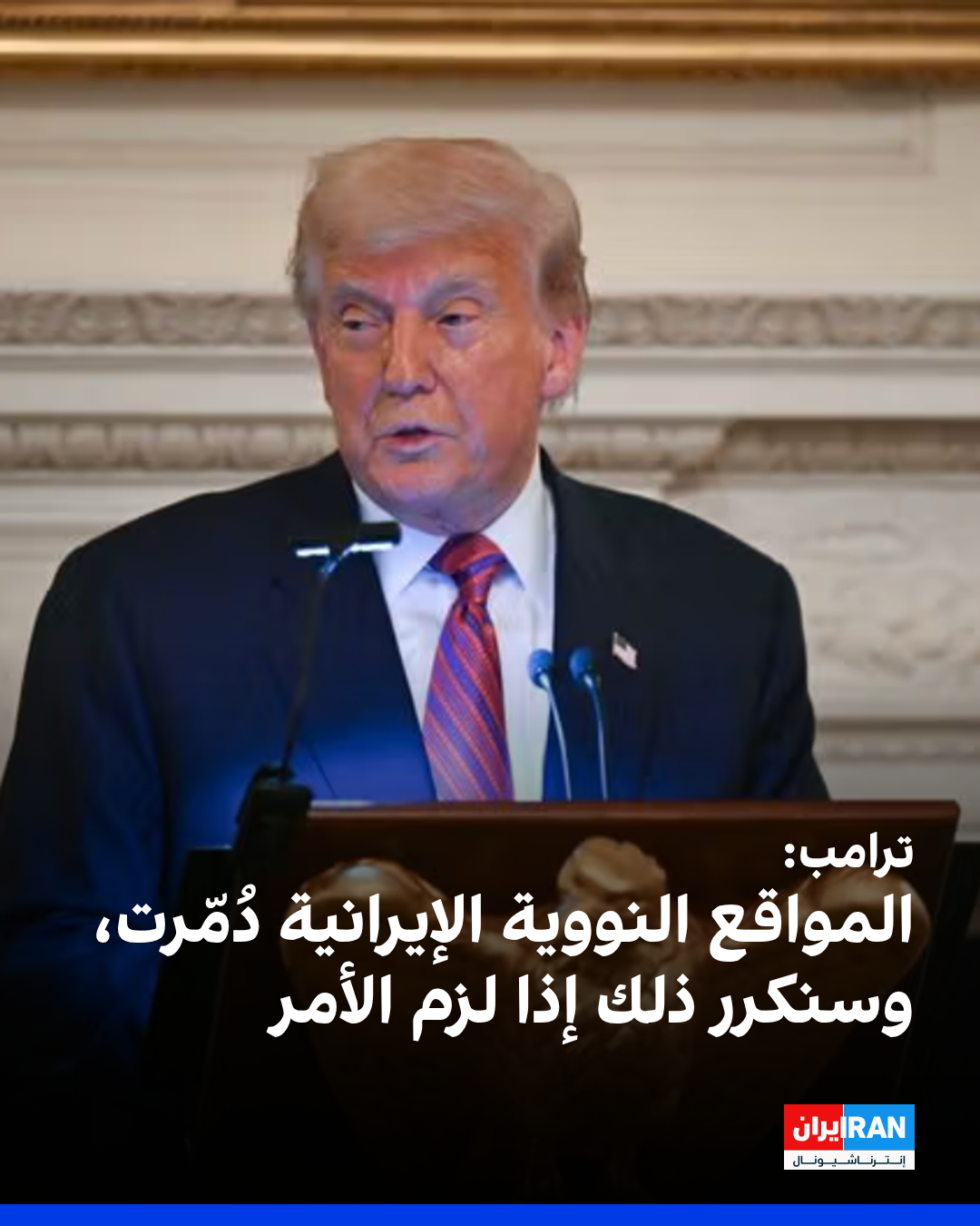 وجدد ترامب تأكيده على أن الهجمات الأميركية أدت إلى تدمير المواقع النووية الإيرانية.