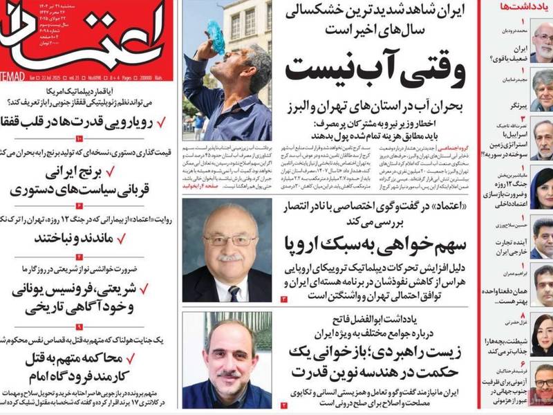 وتداولت الصحف الإيرانية، مقتطفات من رسالة وزير الخارجية الايراني عباس عراقجي، إلى الأمين العام للأمم المتحدة ورئيس مجلس الأمن الدولي، والتي أكد خلالها رفض بلاده محاولات الترويكا تفعيل "آلية الزناد"، معتبرًا أن هذه الدول فقدت شرعيتها السياسية والقانونية نتيجة خروقاتها المتكررة للاتفاق النووي، ودعمها للعدوان الإسرائيلي".