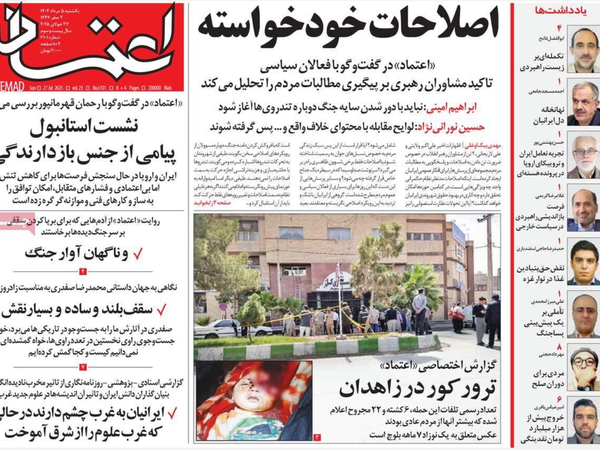 وعلى صعيد آخر، أشارت بعض الصحف إلى تورط إسرائيل في الهجوم الذي استهدف النيابة العامة في مدينة زاهدان، جنوب شرق إيران، وأسفر عن مصرع وإصابة عدد من الأشخاص، وكتبت صحيفة "شرق" الإصلاحية: "يطرح الهجوم تساؤلات حول احتمالية دخول مرحلة جديدة من العمليات المدعومة إسرائيليًا، علمًا بأنها قد تلجأ، بعد فشل خططها السابقة، إلى عمليات بالوكالة عبر جماعات مسلحة لزعزعة الأمن الداخلي، وإثارة الضغوط النفسية".