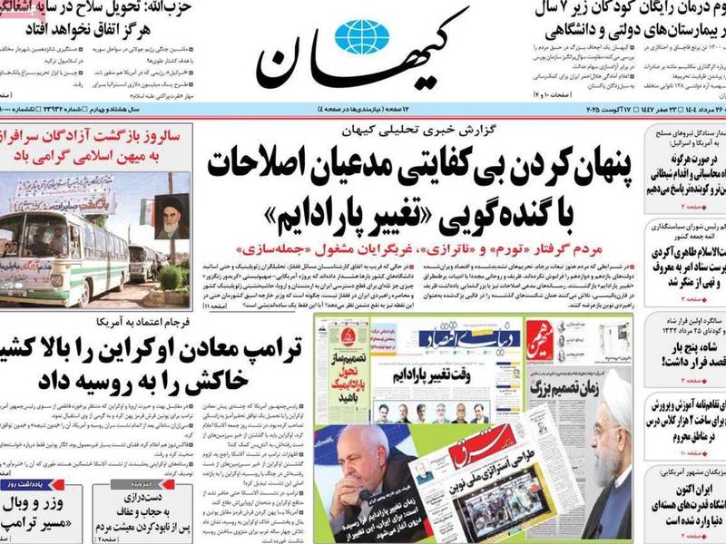 تناولت الصحف الإيرانية، الصادرة يوم الأحد 17 أغسطس (آب)، عددًا من الموضوعات المثيرة للجدل، بدءًا بالانتقادات اللاذعة ضد تصريحات محافظ مازنداران حول الحجاب، وصولاً إلى الهجوم المستمر على سياسات الرئيس والحكومة وأدائها في مختلف المجالات، وتفعيل آلية الزناد، وأزمات المياه والكهرباء.
