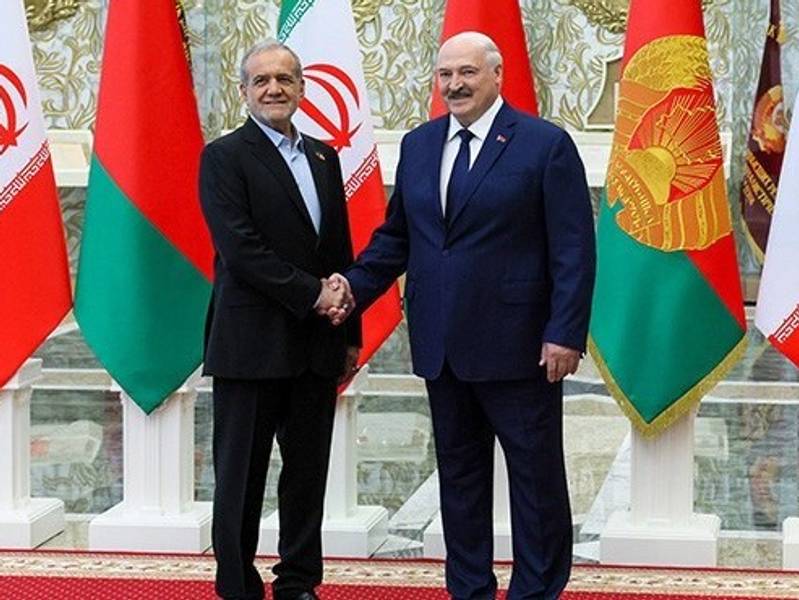 وكان بزشكيان قد وصل إلى بيلاروسيا، يوم الأربعاء 20 أغسطس الجاري. وفي مؤتمر صحافي مشترك مع الرئيس البيلاروسي، أكد أن "إيران لا ترى أي قيود على توسيع العلاقات مع بيلاروسيا"، معلنًا استعداد طهران لنقل خبراتها في الالتفاف على العقوبات إلى مينسك.