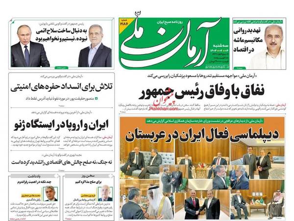 سلطت الصحف الإيرانية الصادرة اليوم الثلاثاء 26 أغسطس (آب)، الضوء على التحولات متعددة الأبعاد التي تشهدها إيران، والتي تتراوح بين المفاوضات النووية الحاسمة في جنيف، والأزمات الاقتصادية التي تهزّ أسواق المال، والجدل حول المواقف السياسية لمسؤولين كبار.