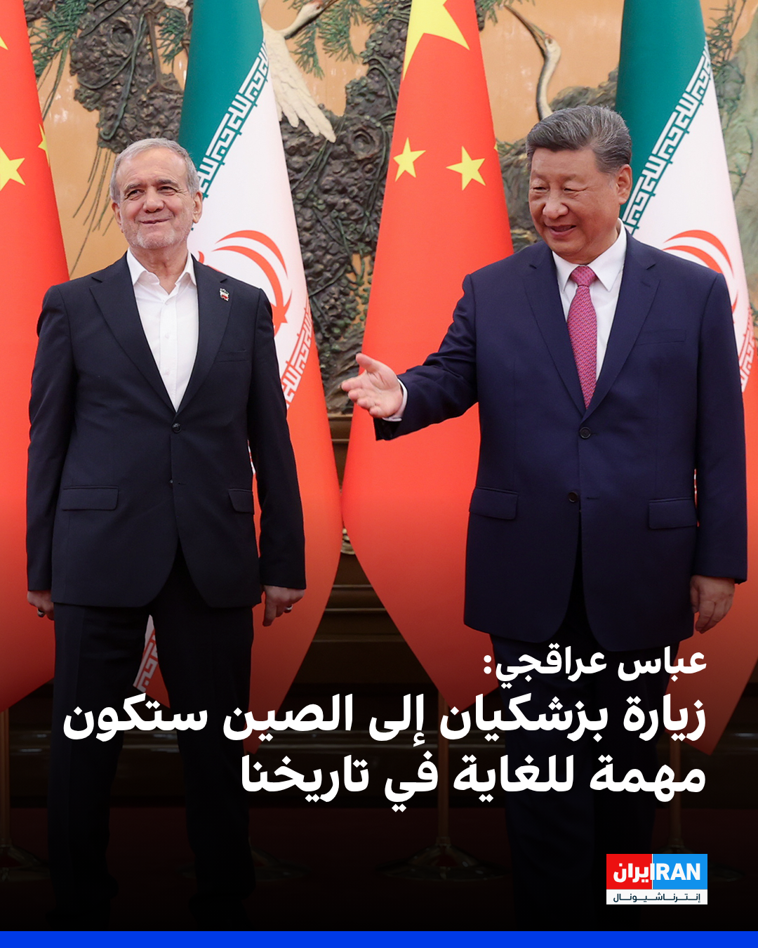 اعتبر وزير الخارجية الإيرانية، عباس عراقجي، زيارة مسعود بزشکیان إلى الصين للمشاركة في قمة منظمة شنغهاي ولقاءاته مع قادة الدول "إحدى أهم الزيارات في تاريخ إيران".