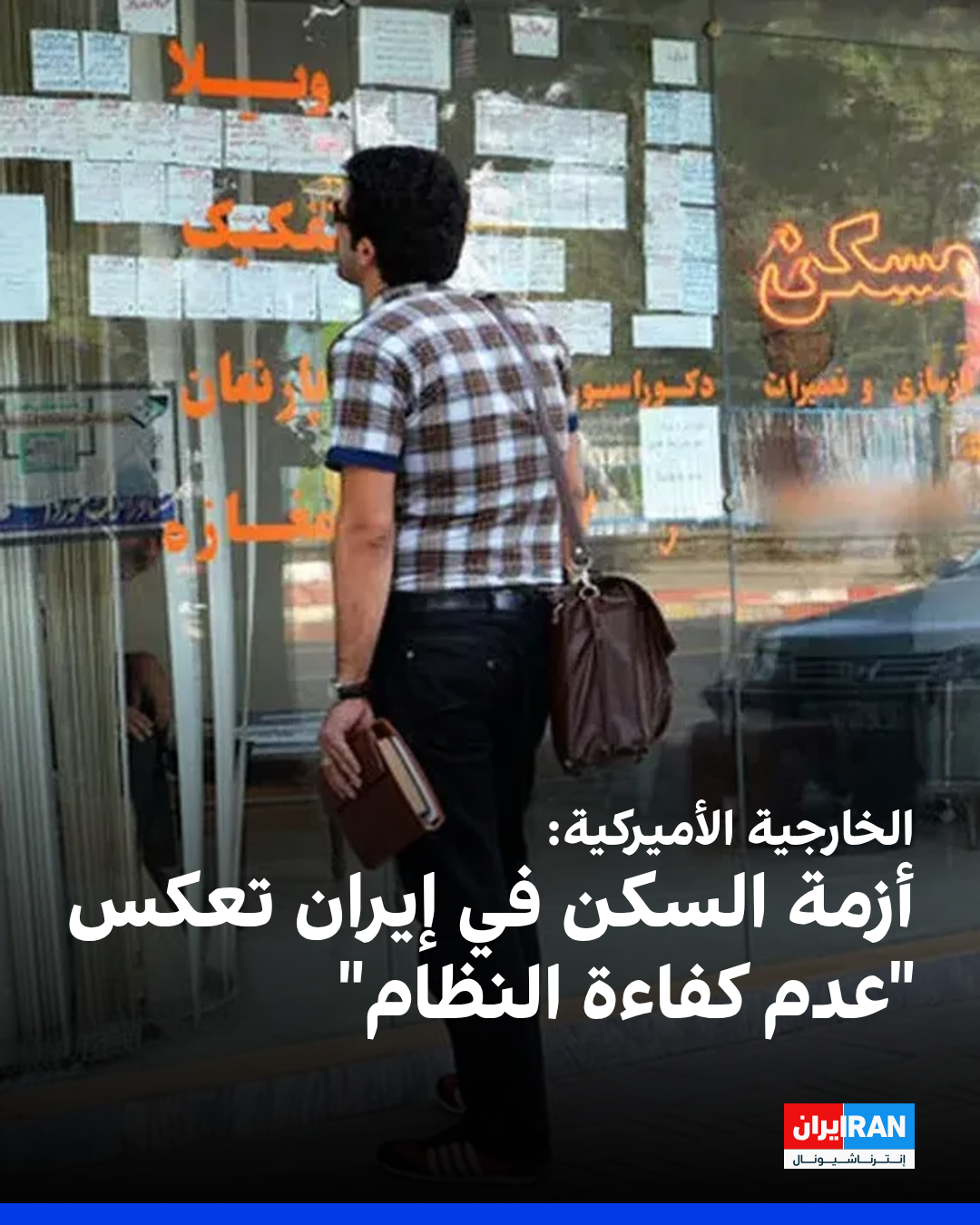 كتبت الصفحة الفارسية لوزارة الخارجية الأميركية على منصة "إكس" أن أزمة السكن في إيران تمثل انعكاساً واضحاً لـ"قيادة هذا النظام غير الكفء"، مؤكدة أن النظام الإيراني عاجز حتى عن توفير الحد الأدنى من الاستقرار لشعبه، في وقت تعيش فيه "الطبقة الحاكمة الفاسدة" في أبراج فاخرة.
