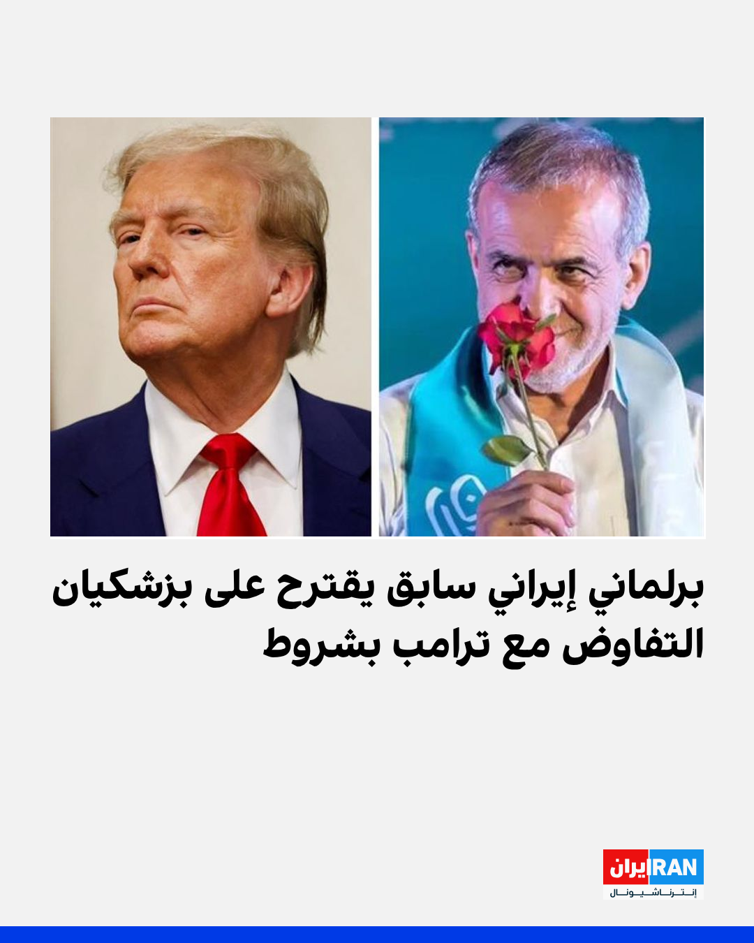 وجّه النائب السابق لرئيس البرلمان الإيراني، علي مطهري، رسالة مفتوحة إلى الرئيس مسعود بزشكيان، دعاه فيها إلى إبداء استعداده للتفاوض مع الرئيس الأميركي، دونالد ترامب في دولة ثالثة أو في نيويورك، شرط التخلي عن مطلب "التخصيب الصفري"، والتزام واشنطن بعدم شن هجوم جديد، ودفع تعويضات.