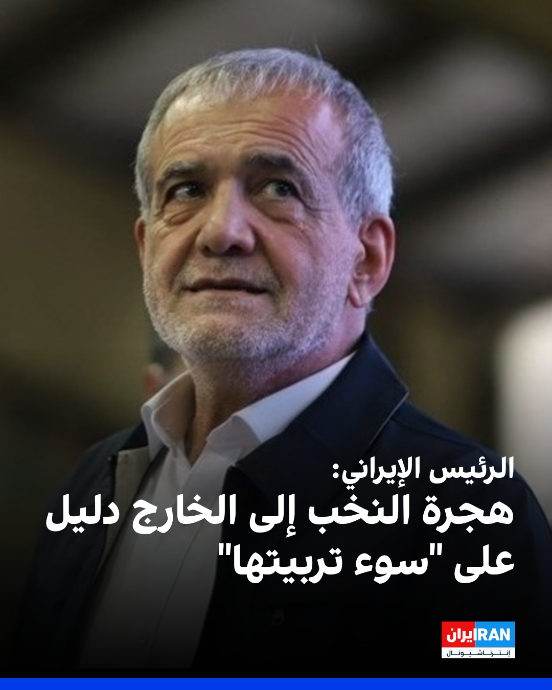 اعتبر الرئيس الإيراني، مسعود بزشكيان، هجرة النخب إلى الخارج دليلاً على "سوء تربيتها"، وقال: "لا قيمة إطلاقًا لأن نُعدّ مجموعة من الأشخاص يكون كل طموحهم وأمنياتهم أن يغادروا إلى الخارج".