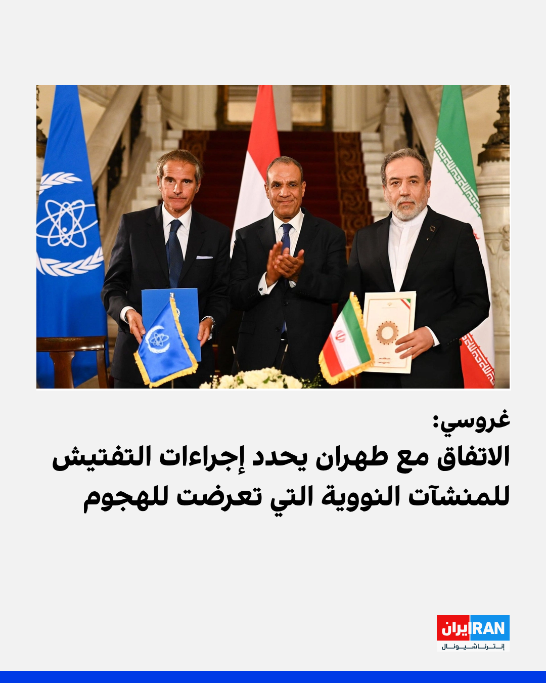 ووفقاً لما أعلنه غروسي، فإن الاتفاق يشمل تفتيش الوكالة لـ"جميع المنشآت النووية"، بما في ذلك تقديم تقارير عن المراكز التي تعرضت للهجوم، وكذلك المواد النووية الموجودة فيها.