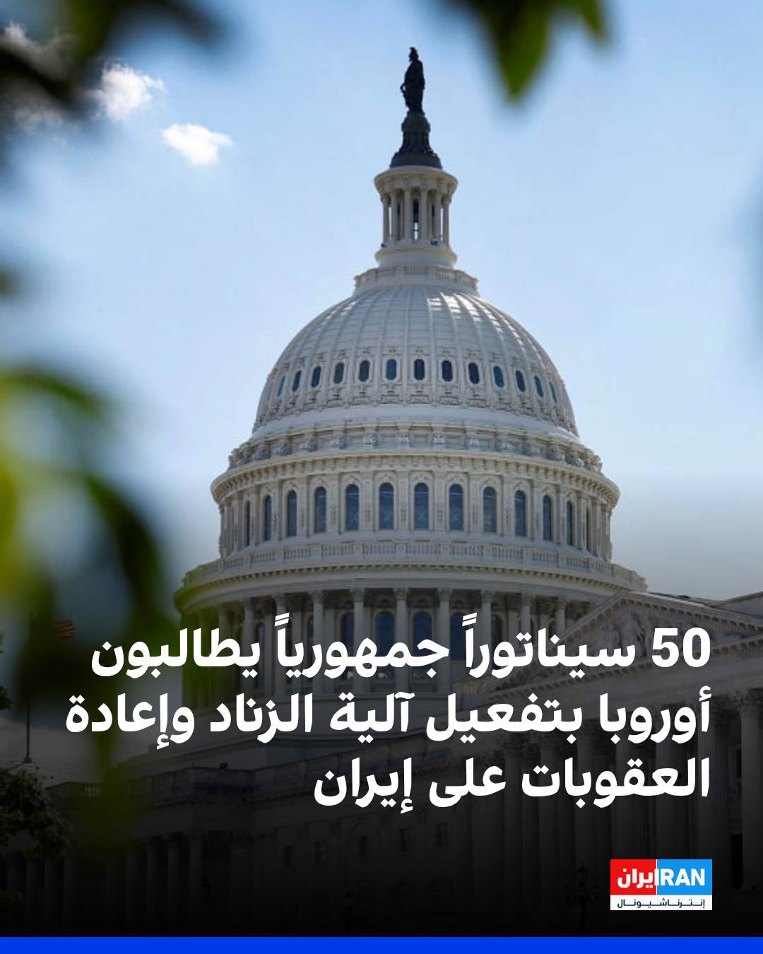 وجّه 50 سيناتوراً جمهورياً في الولايات المتحدة رسالة إلى وزراء خارجية بريطانيا وفرنسا وألمانيا، طالبوا فيها بتفعيل آلية الزناد وفرض العقوبات الدولية مجدداً على إيران.