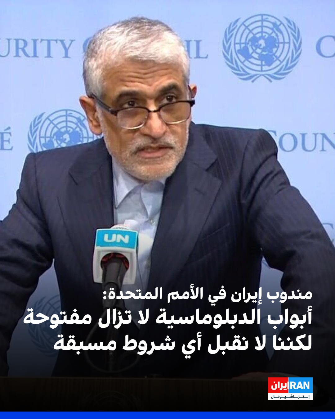 قال أمير سعيد إيرواني: أبواب الدبلوماسية لا تزال مفتوحة، لكننا لا نقبل أي شروط مسبقة. سيلتقي بزشكيان وعراقجي بنظرائهما في نيويورك.