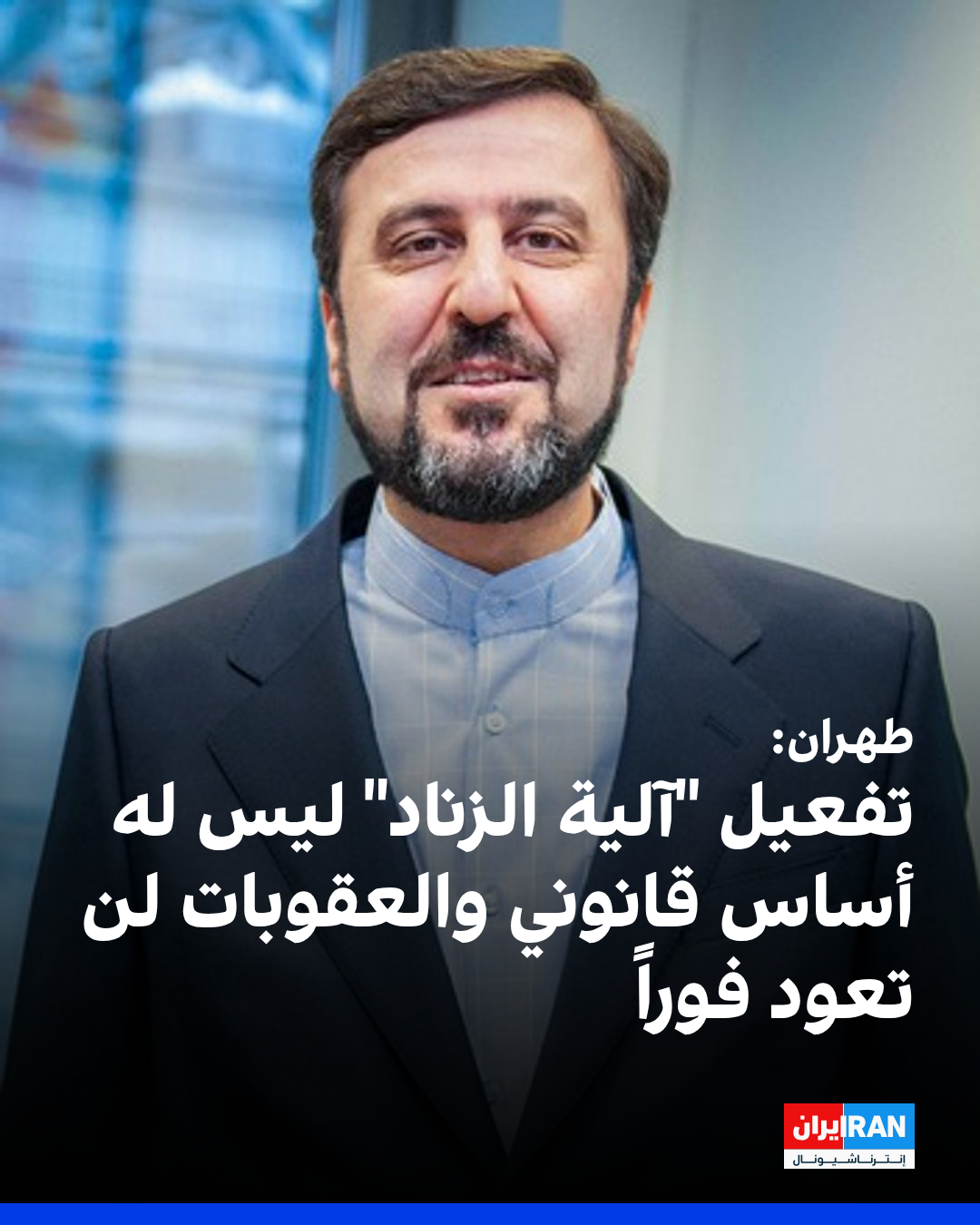 وبشأن احتمال تفعيل آلية الزناد، أوضح غريب آبادي أن ذلك "لا يعني عودة فورية للعقوبات التي سبق أن أنهى مجلس الأمن العمل بها، بل يستغرق الأمر سبعة إلى ثمانية أيام". وأكد أن "التأثيرات النفسية لهذه الخطوة بدأت بالفعل، ويجب أن تؤخذ في الحسبان وتدار من قبل الجهات المعنية".