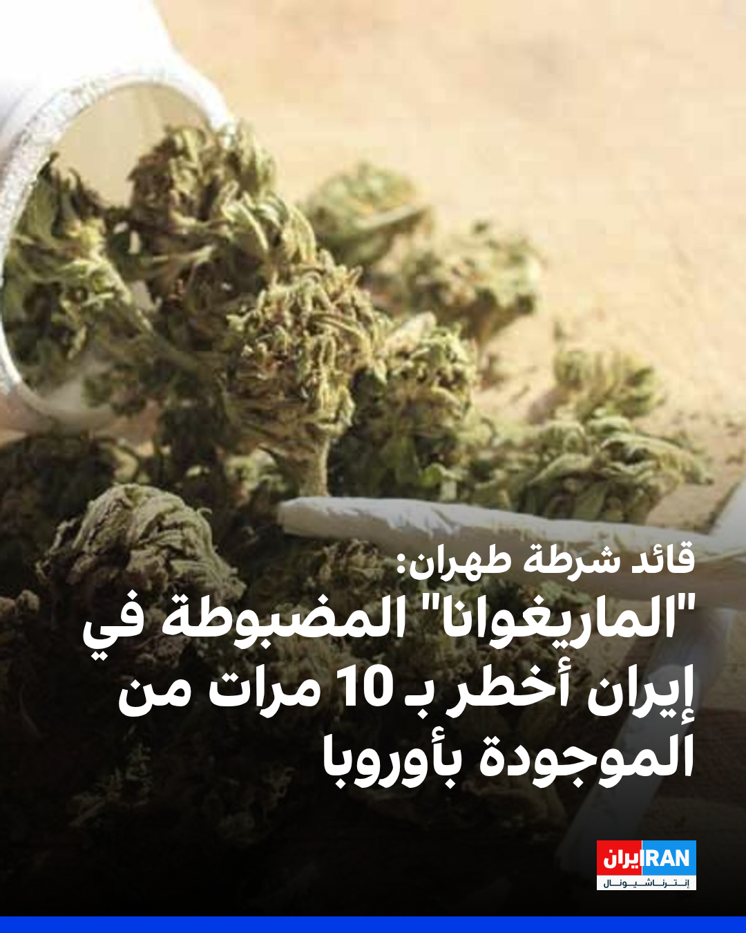 قال قائد الشرطة في طهران، عباس علي محمديان، إن الماريغوانا (المعروفة باسم كُلي) التي يتم ضبطها في إيران تتمتع بنسبة تأثير مهلوس تفوق بنحو 10 مرات العينات التي يتم توزيعها في بعض الدول الأوروبية.