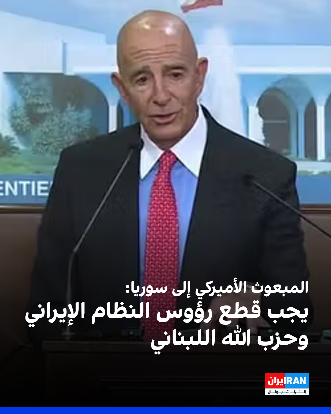 قال المبعوث الأميركي الخاص إلى سوريا، توم باراك، إن حزب الله اللبناني والنظام الإيراني "عدوان لنا"، داعيًا إلى قطع مصادر تمويلهما و"قطع رؤوس هذه الأفاعي".