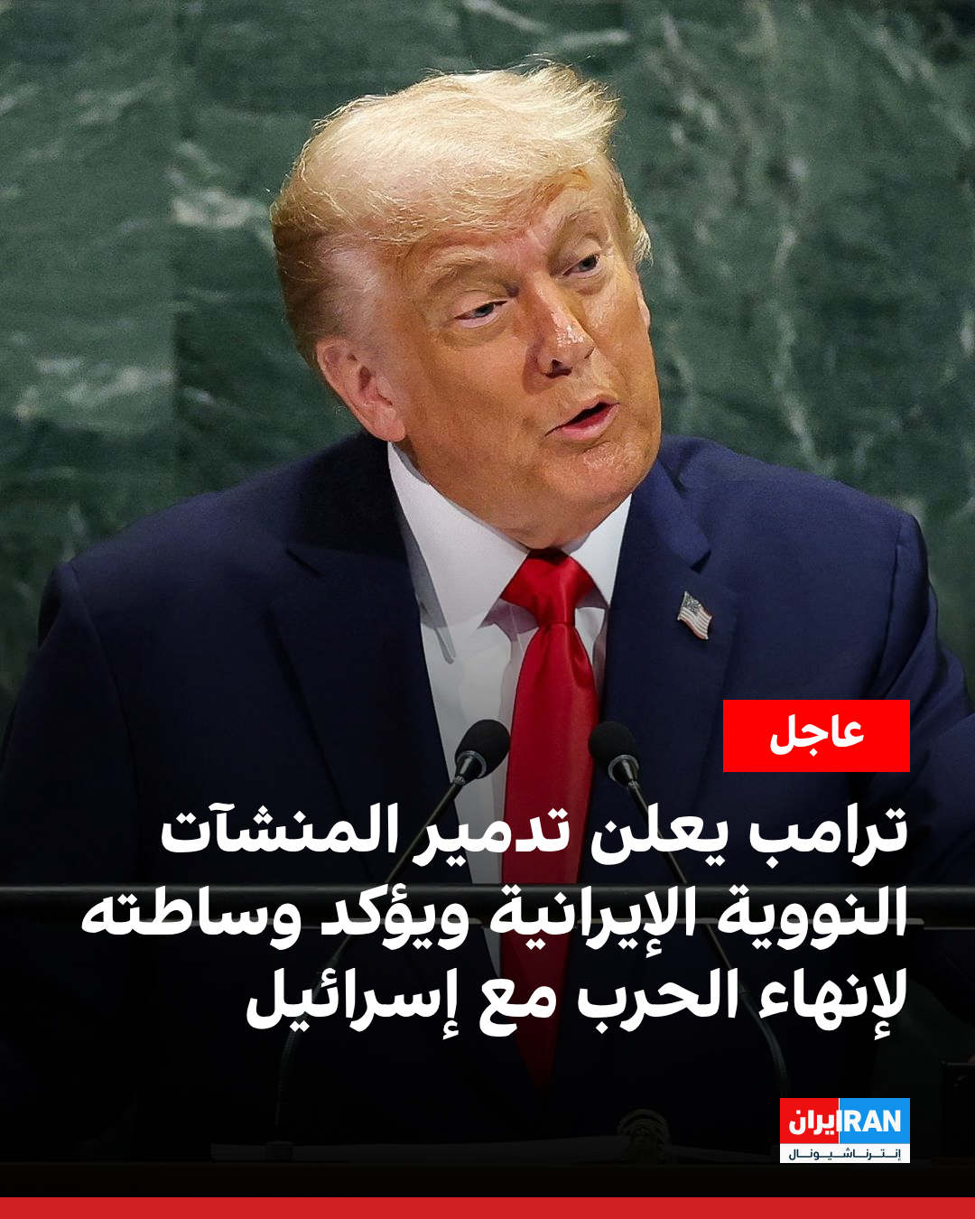أعلن دونالد ترامب، رئيس الولايات المتحدة، في كلمته أمام الجمعية العامة للأمم المتحدة، أن الجيش الأميركي نفذ عملية أُطلق عليها اسم "مطرقة منتصف الليل" استهدفت المنشآت النووية الحيوية لإيران، مؤكداً أنها "دُمرت بالكامل".