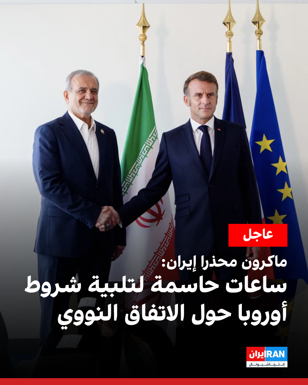 وطالب ماكرون إيران بقبول الشروط التي حددتها باريس وبرلين ولندن دون قيد أو شرط، والتي تشمل منح المراقبين من الوكالة الدولية للطاقة الذرية وصولاً كاملاً، والشفافية بشأن مخزون المواد المخصبة، واستئناف المفاوضات على الفور.