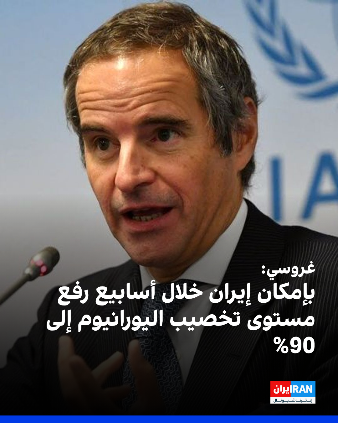 وأضاف مؤكّدًا أنه إذا قررت إيران رفع مستوى تخصيب اليورانيوم إلى نسبة 90%، فإن ذلك لن يستغرق وقتًا طويلًا: «المسألة تستغرق أسابيع، لا أشهر أو سنوات».