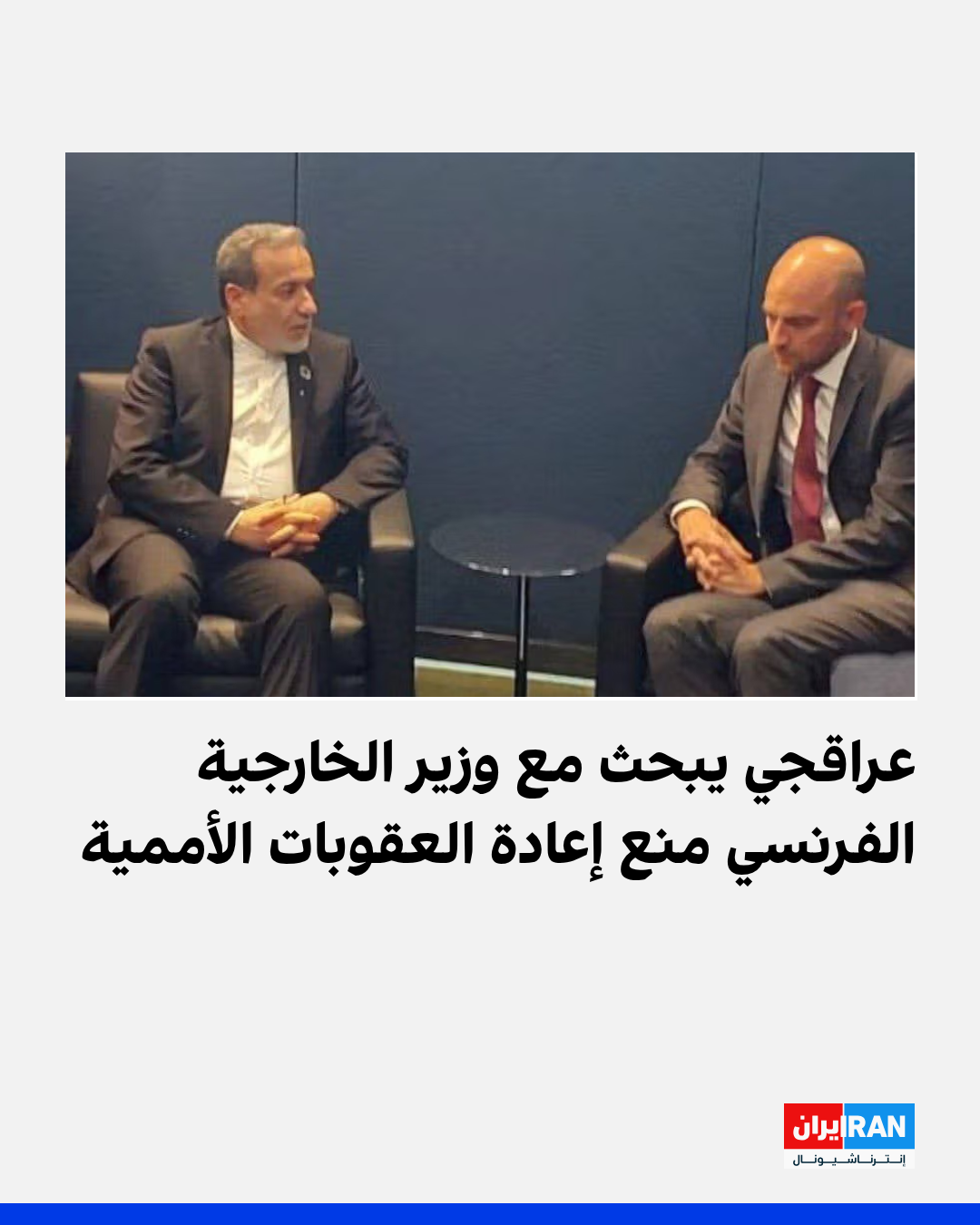 التقى عباس عراقجي، وزير الخارجية الإيراني، بنظيره الفرنسي جان نويل بارو، على هامش الاجتماع السنوي للجمعية العامة للأمم المتحدة في نيويورك.
