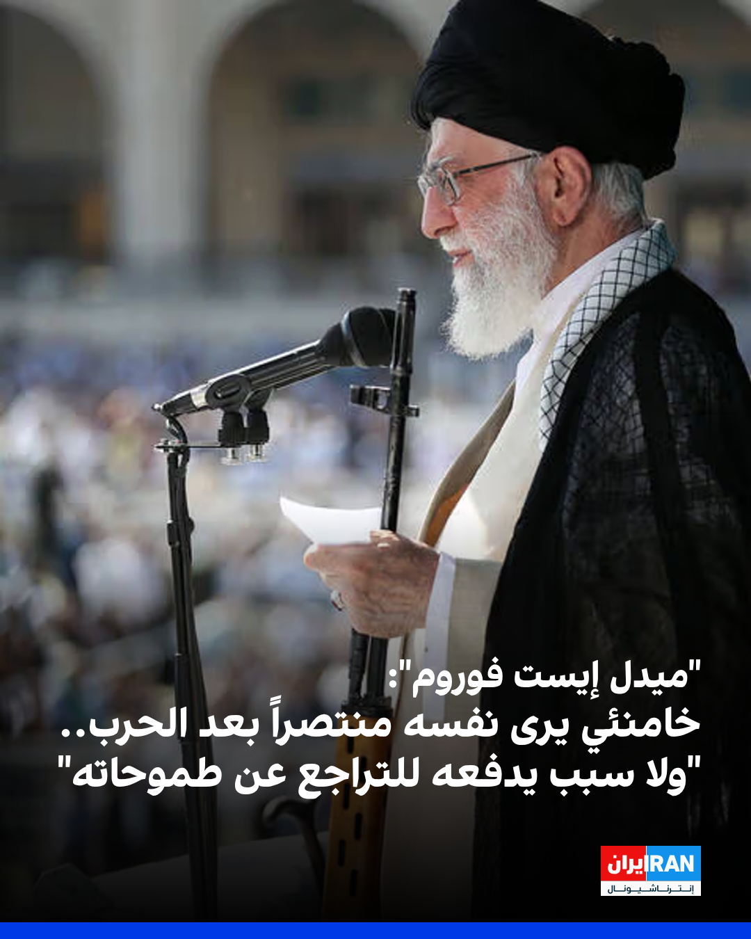 ذكر موقع "ميدل إيست فوروم" في تحليل له أن تصلّب المرشد الإيراني علي خامنئي في مواقفه ضد إسرائيل يعود إلى اعتقاده بأن "نظامه بات في مأمن"، موضحاً أن الحرب الأخيرة شكّلت بالنسبة إليه "اختباراً لبقاء النظام" وأنه اليوم يعتبر نفسه مُحقّاً أمام من كانوا يدعون إلى التفاوض.