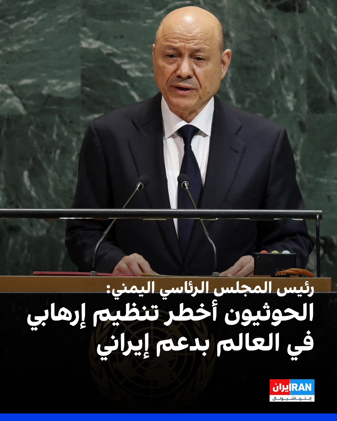 في خطابه أمام الجمعية العامة للأمم المتحدة، تحدث رشاد محمد العليمي، رئيس مجلس القيادة الرئاسي في اليمن، واصفا ميليشيات الحوثي المدعومة من إيران بأنها "أخطر تنظيم إرهابي في العالم"، داعياً المجتمع الدولي إلى تحرك عاجل "لإنقاذ أرواح شعوب المنطقة".