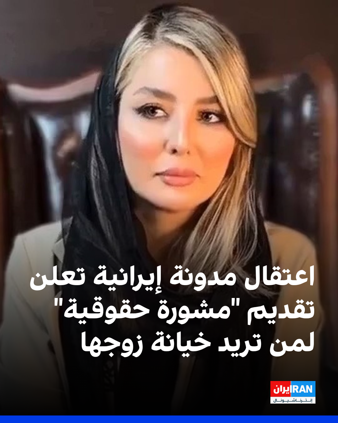 أعلنت السلطة القضائية في إيران، عن اعتقال مدونة شاركت في إعلان ترويجي لمركز حقوقي، ظهرت فيه وهي توجّه حديثها للنساء بدعوة مثيرة للجدل مفادها أنه "إذا كانت لديكن نية للخيانة، راجعن هذا المركز".
