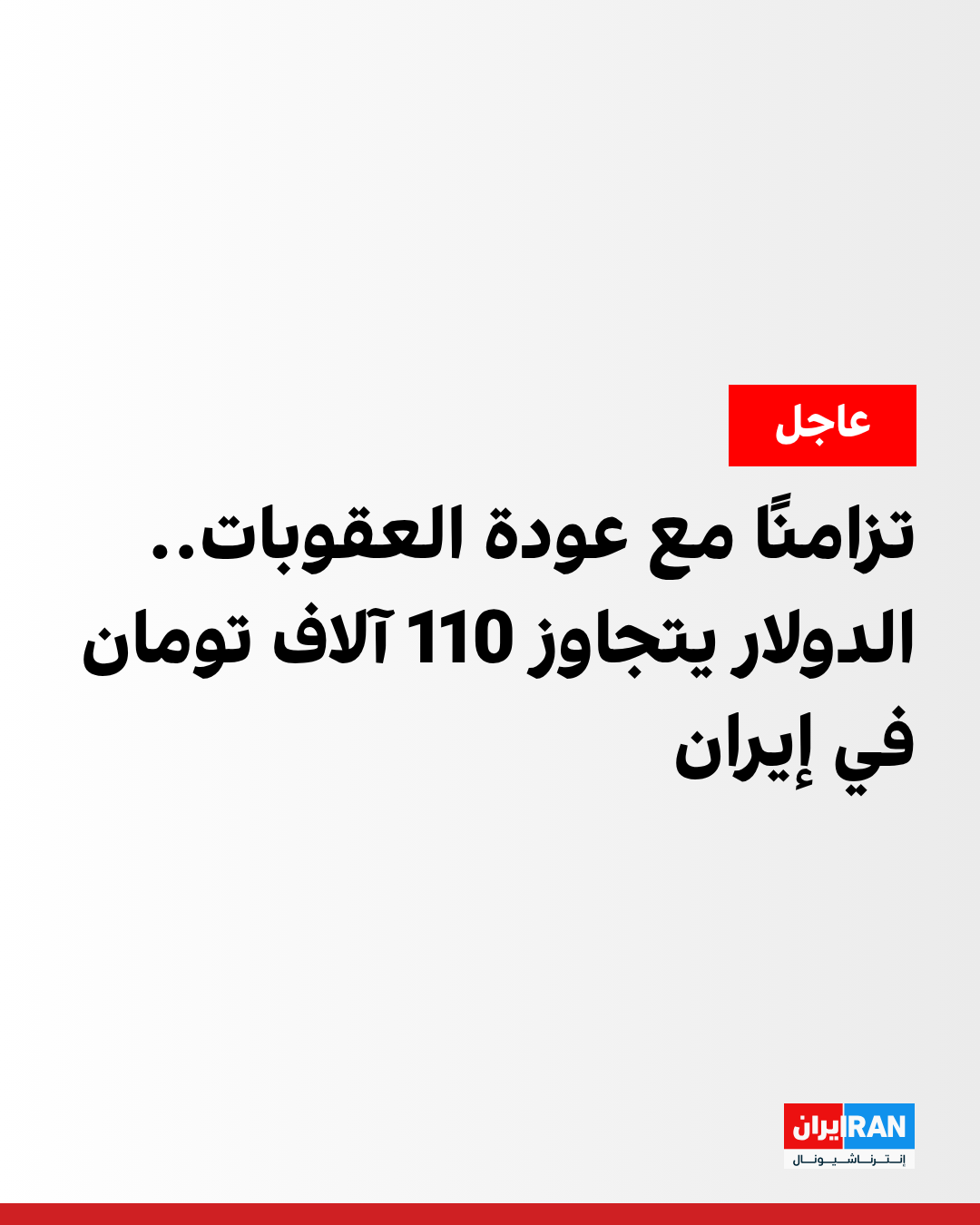 سجّل سعر صرف الدولار في السوق الحرة الإيرانية قفزة قياسية جديدة، متجاوزًا حاجز 110 آلاف تومان، وذلك بالتزامن مع عودة العقوبات الأممية على إيران.