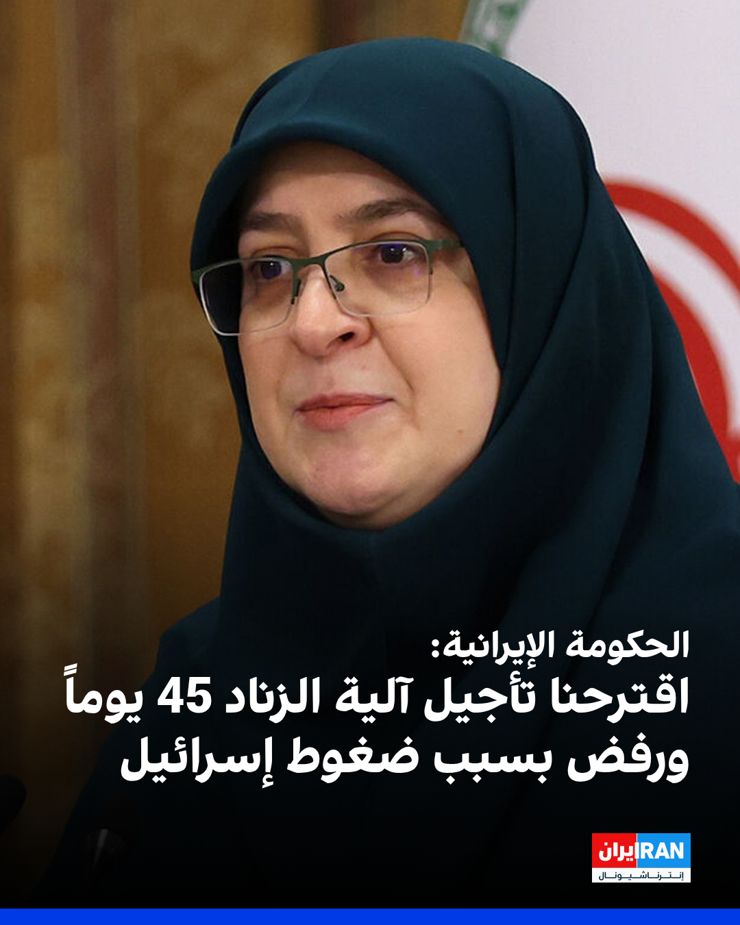 وأكدت مهاجراني أنه "في الليلة الأخيرة، قُدّم اقتراح تأجيل آلية الزناد لمدة 45 يوماً من الجانب الإيراني، لكن في النهاية، لم يتم قبول هذا المقترح أيضاً بسبب ضغط إسرائيل".