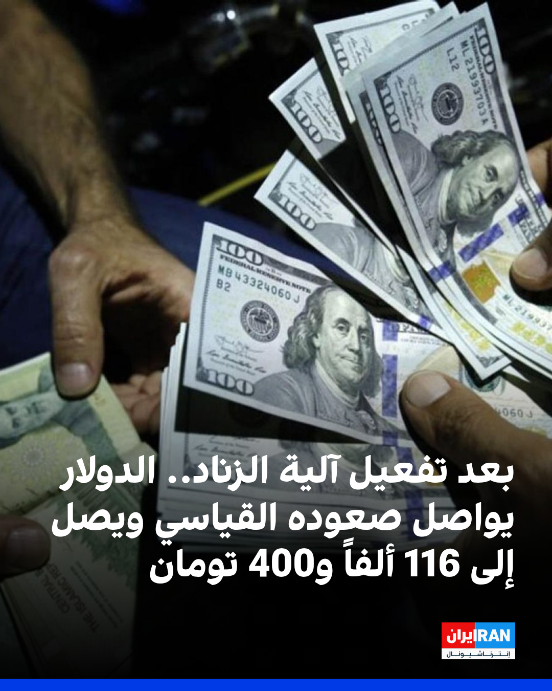 في سياق ارتفاع أسعار العملات الأجنبية في إيران بعد تفعيل آلية الزناد وعودة عقوبات الأمم المتحدة، سجل سعر الدولار في السوق الحرة مساء الأربعاء ارتفاعاً يزيد على ألف تومان مقارنة ببداية اليوم، ليصل إلى نحو 116 ألفاً و400 تومان.