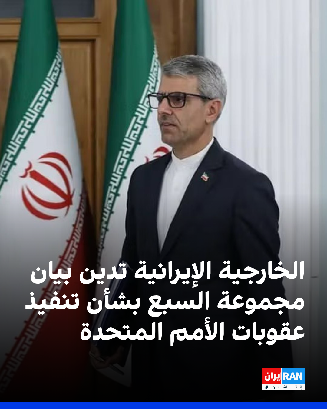 وصف المتحدث باسم وزارة الخارجية الإيرانية، إسماعيل بقائي، البيان المشترك لمجموعة السبع حول تنفيذ عقوبات الأمم المتحدة ضد إيران بأنه "مخادع وقلبٌ للحقائق" وأدان صدوره.