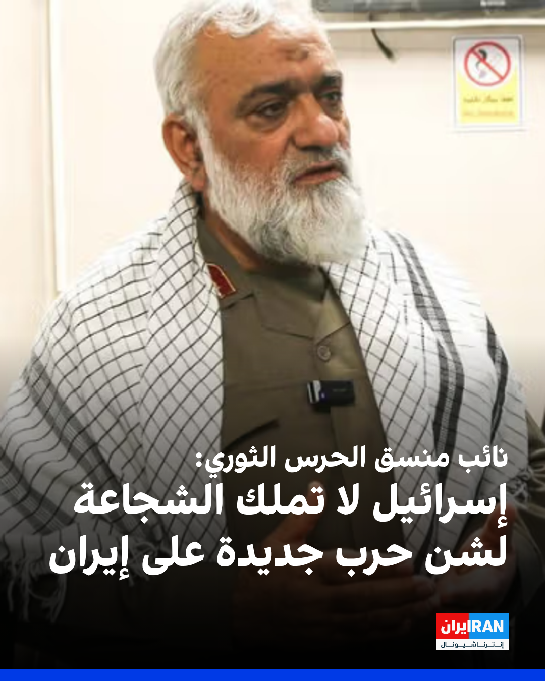 أشار نائب منسق الحرس الثوري الإيراني، محمد رضا نقدي، إلى حرب الـ 12 يومًا مع إسرائيل، قائلاً: "رغم أن العدو كان يتوسل لوقف إطلاق النار منذ اليوم الرابع للمعركة، فإنه لا يملك الجرأة على تكرار العدوان علينا، وحتى إن تحققت هذه التهديدات، فلا خوف منها".