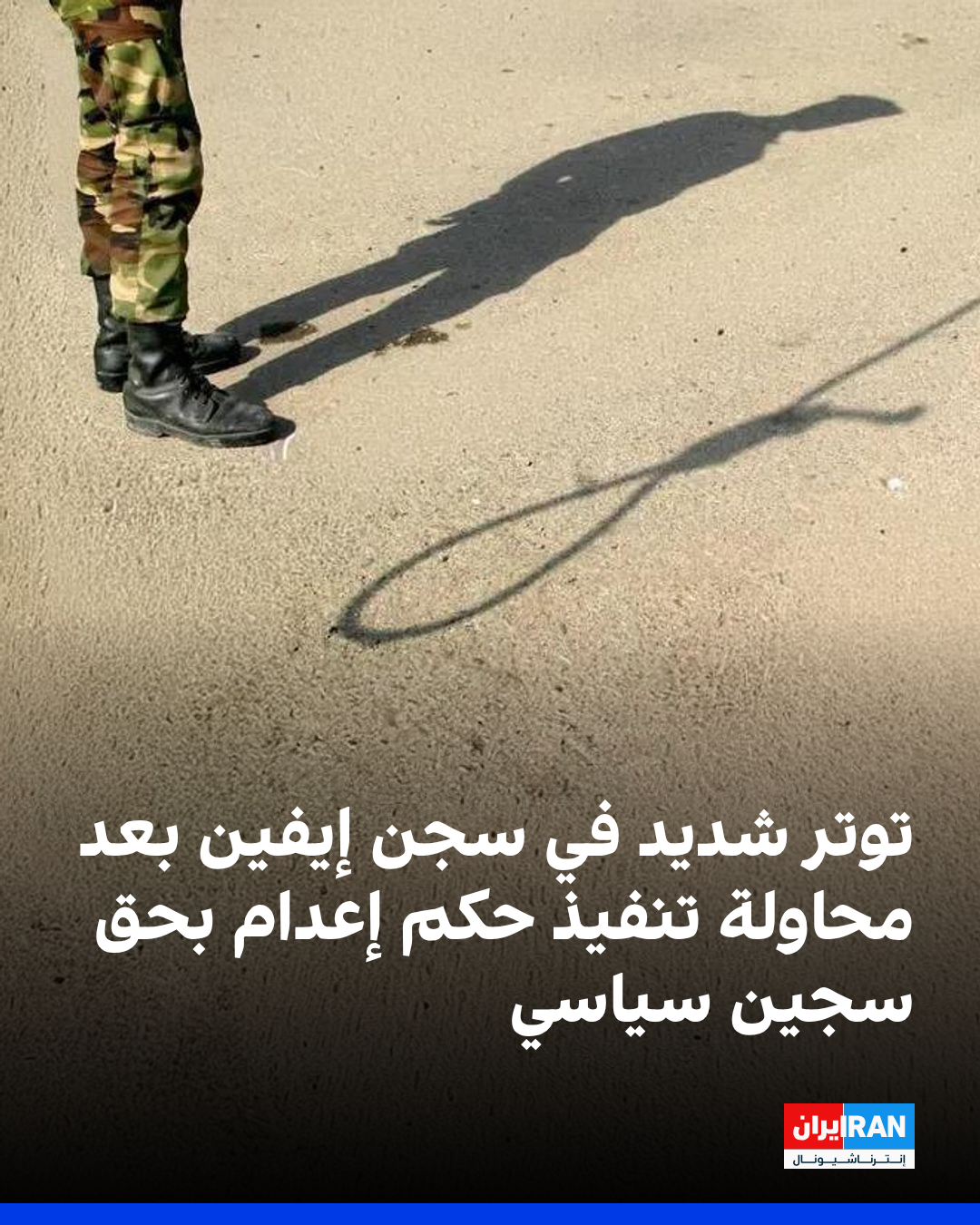 أفادت تقارير من سجن إيفين بحدوث توتر شديد بين السجناء وموظفي السجن إثر محاولة تنفيذ حكم الإعدام بحق أحد السجناء السياسيين.