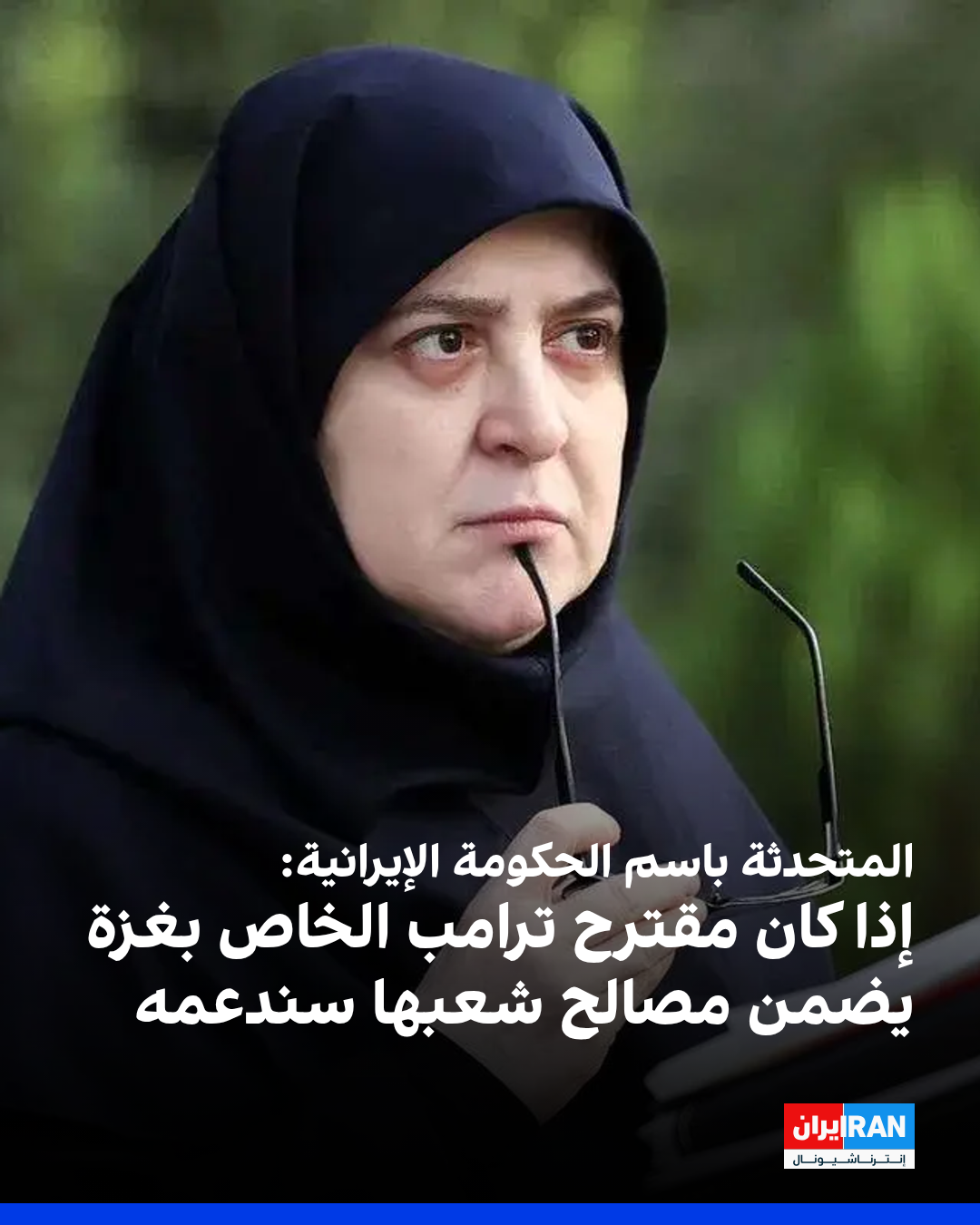 قالت المتحدثة باسم الحكومة الإيرانية، فاطمة مهاجراني، تعليقاً على خطة دونالد ترامب للسلام في غزة، إن "أي سلام دائم يضمن مصالح الشعب الفلسطيني ويسهم في وقف الإبادة الجماعية وتحقيق حقوق هذا الشعب، سيحظى بدعمنا".