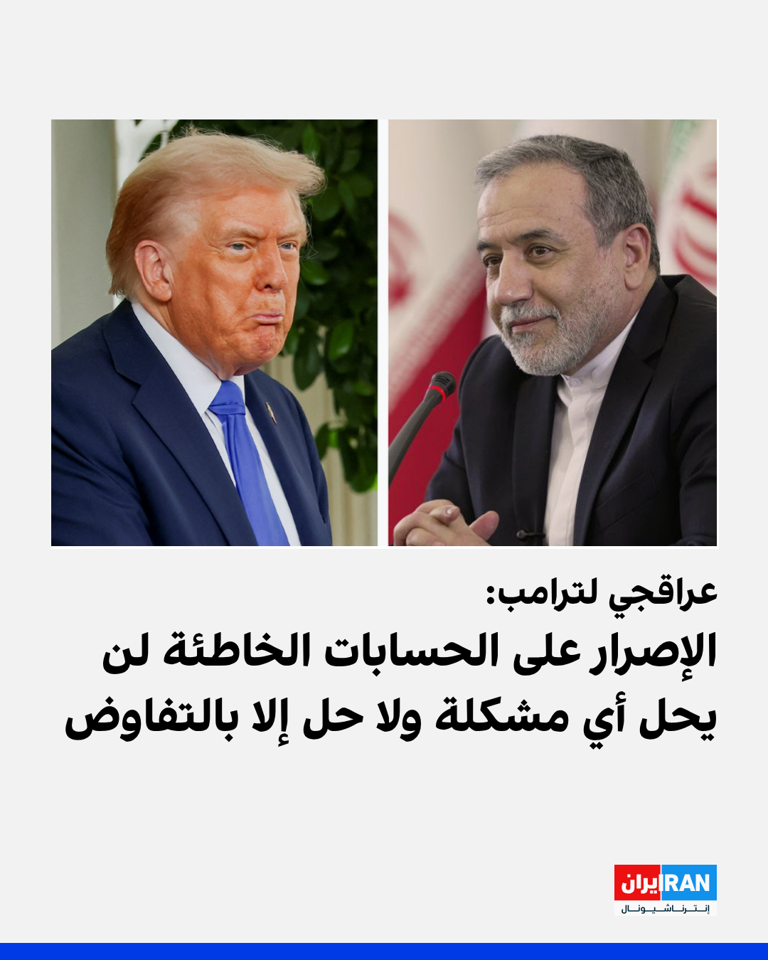 قال عباس عراقجي، أمين المجلس الأعلى للأمن القومي الإيراني، تعليقاً على تصريحات الرئيس الأميركي السابق دونالد ترامب بشأن البرنامج النووي الإيراني وتهديده مجدداً بقصف المنشآت النووية، إنّ "الإصرار على الخطأ في الحسابات لن يحلّ أي مشكلة".