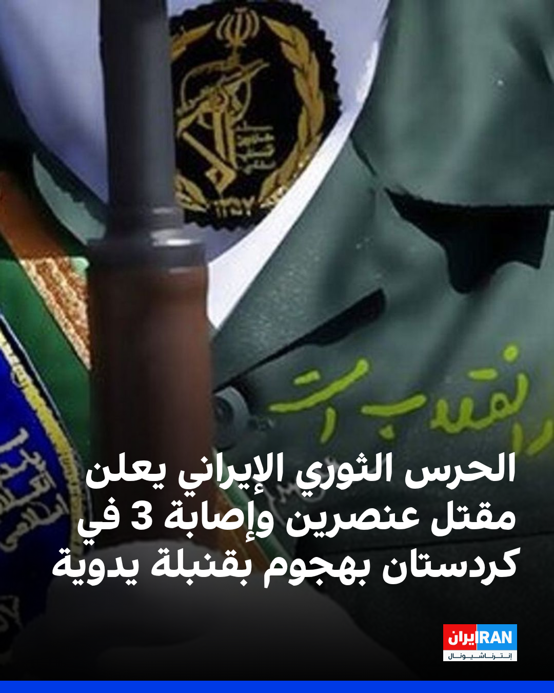 أعلن الحرس الثوري الإيراني في محافظة كردستان مقتل اثنين من عناصره وإصابة ثلاثة آخرين، إثر إلقاء قنبلة يدوية على مقرّ قاعدة المقاومة في منطقة سروآباد-مفترق حزب الله.