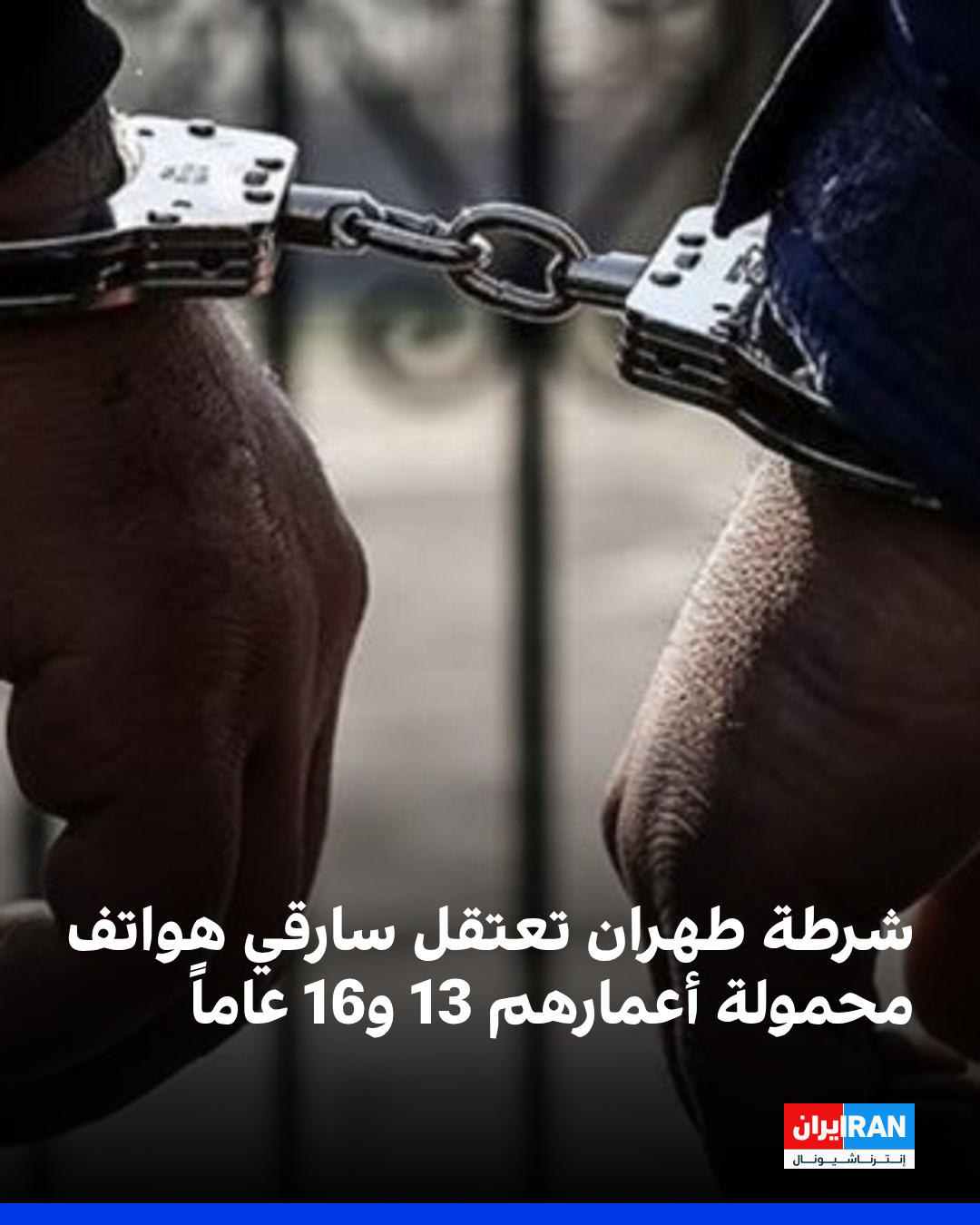 أعلن رئيس قسم الشرطة الوقائية السادس في طهران، أن سارقي الهواتف المحمولة على "طريق الإمام علي" قد جرى اعتقالهم، وهما "مراهقان يبلغان من العمر 13 و16 عاماً".
