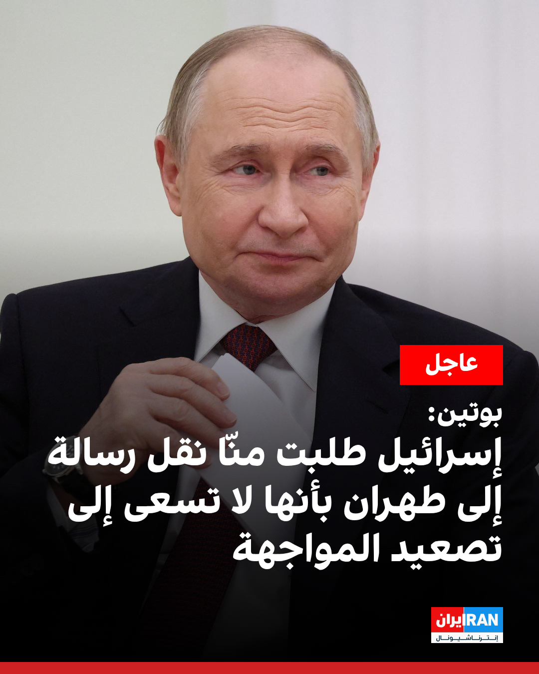 وبحسب وكالة "تاس" الروسية، أوضح بوتين خلال زيارته إلى طاجيكستان أن "روسيا ما تزال على تواصل مع إسرائيل، وقد تلقّت رسائل من قيادتها تطلب منا إبلاغ الأصدقاء الإيرانيين بأن إسرائيل تسعى إلى تسوية العلاقات ولا مصلحة لها في أي مواجهة".