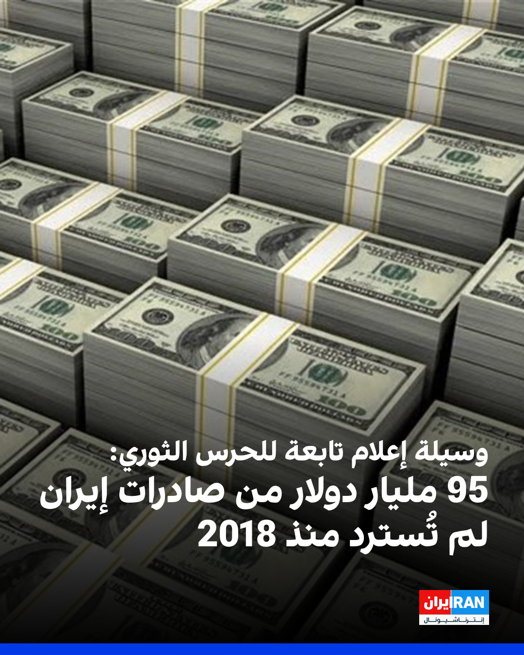 ذكرت وكالة "تسنيم"، التابعة للحرس الثوري الإيراني، أنه منذ عام 2018، بلغت قيمة الصادرات غير النفطية– باستثناء صادرات الدولة من النفط والكهرباء والغاز الطبيعي– نحو 270 مليار دولار، لم يُعَد منها إلى البلاد 95 مليار دولار، أي ما يعادل 35 % من إجمالي الصادرات.