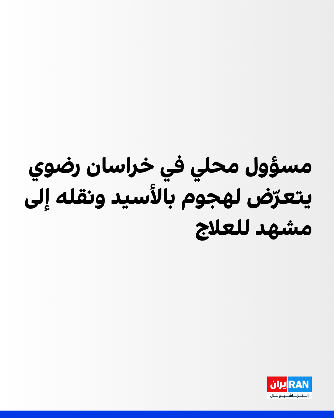قالت السلطات المحلية في محافظة خراسان رضوي إن رئيس مجلس مدينة دورود في قضاء زبرخان تعرّض لهجوم بالأسيد.