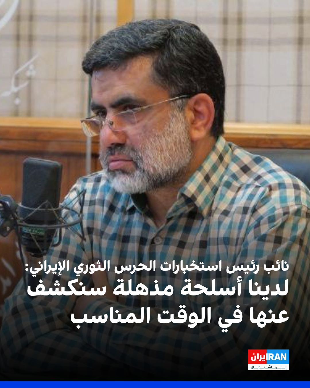 قال نائب رئيس جهاز استخبارات الحرس الثوري الإيراني، محمد حسن تولائي، إن "لدينا أسلحة مذهلة سنكشف عنها في الوقت المناسب إذا أخطأ العدو".