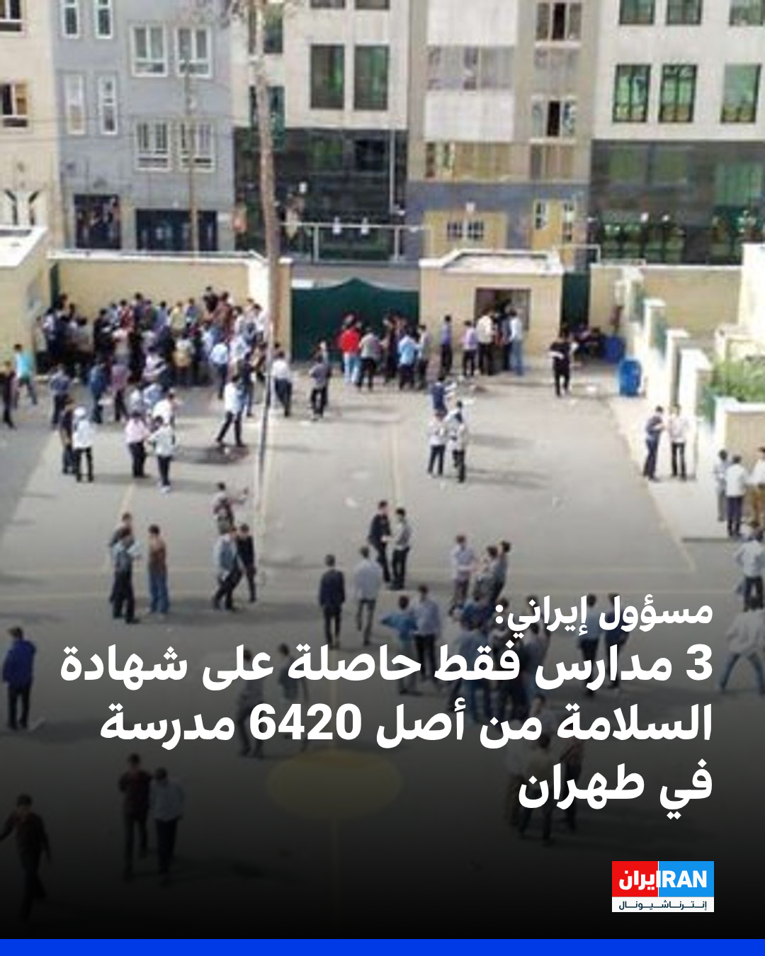 قال نائب رئيس إدارة الوقاية في هيئة الإطفاء، كامران عبدولي، إن "ثلاث مدارس فقط حصلت شهادة تأييد السلامة، من بين أكثر من 6 آلاف و420 مدرسة في العاصمة طهران".