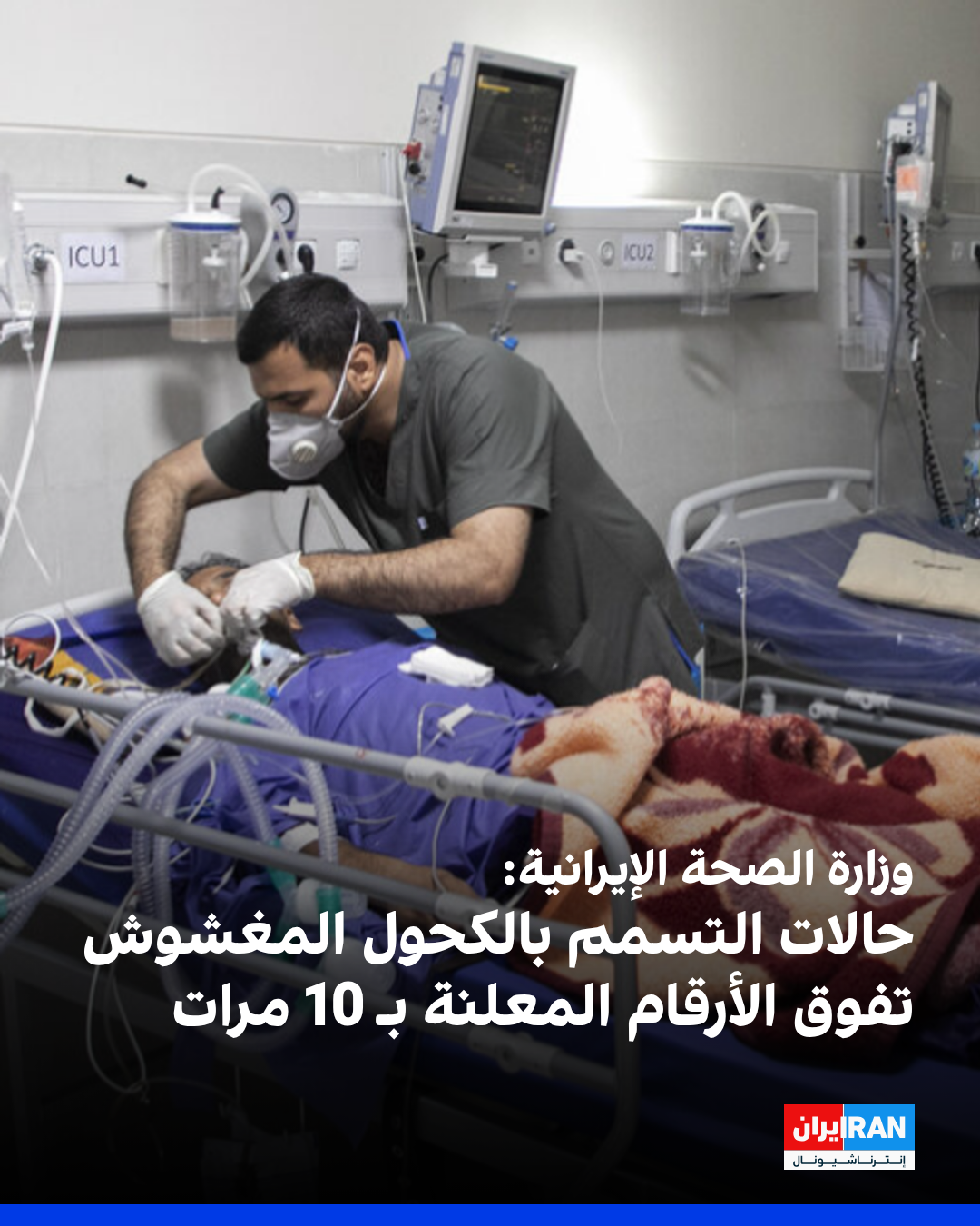 قال مساعد وزير الصحة الإيراني، علي رضا رئيسي، إن "العدد الحقيقي لحالات التسمم بالكحول المغشوش أكبر بعدة أضعاف من عدد الحالات التي تُسجَّل في أقسام الطوارئ".