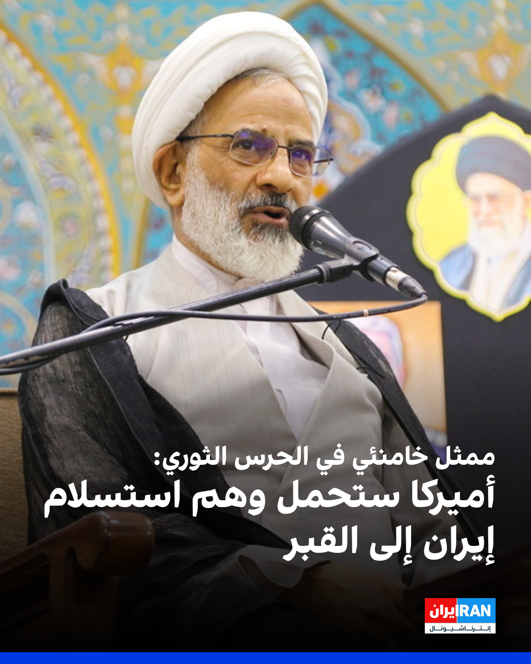 قال ممثل المرشد الإيراني، علي خامنئي، في قوات الحرس الثوري، عبدالله حاجي صادقي، إن "أميركا تعتقد أنها سترى إيران مستسلِمة، إلا أن الوهم ستحمله إلى القبر".