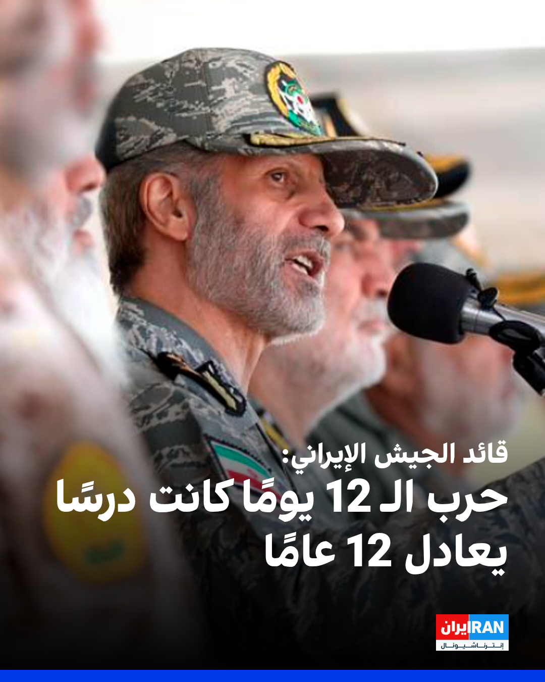 قال قائد الجيش الإيراني، أمير حاتمي، خلال اجتماع مع أعضاء لجنة الأمن القومي في البرلمان: "إن الحرب، التي استمرت 12 يومًا (مع إسرائيل)، كانت بمثابة درس يعادل 12 عامًا بالنسبة لنا، وبناءً عليه اتخذنا النهج اللازم".