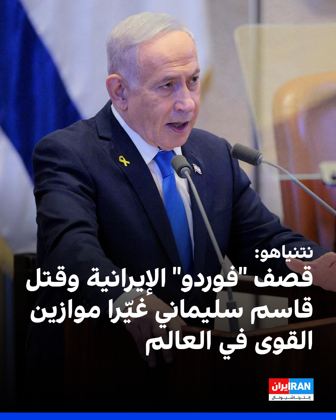 قال رئيس الوزراء الإسرائيلي، بنيامين نتنياهو، مخاطبًا الرئيس الأميركي، دونالد ترامب، في "الكنيست" الإسرائيلي: "إن قراركم بقصف منشأة فوردو النووية وقتل قاسم سليماني، مهندس الموت، غيّرا موازين القوى في العالم وأعاد مكانة الولايات المتحدة".