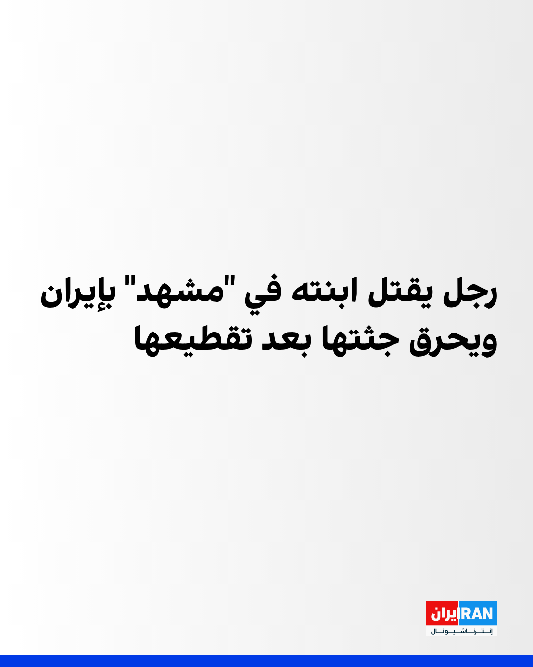 ذكرت وسائل إعلام إيرانية أن رجلاً في مدينة "مشهد"، شمال شرق إيران، أقدم على قتل ابنته البالغة من العمر 29 عامًا، ثم مثّل بجثتها وأحرقها، قبل أن يتم القبض عليه من قِبل قوات الأمن.