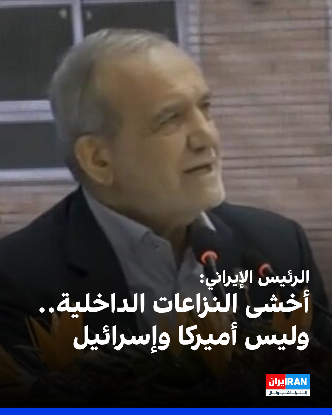 قال الرئيس الإيراني، مسعود بزشكیان: "لا أخشى الولايات المتحدة الأميركية ولا إسرائيل، بل أخشى الانقسامات والنزاعات الداخلية".