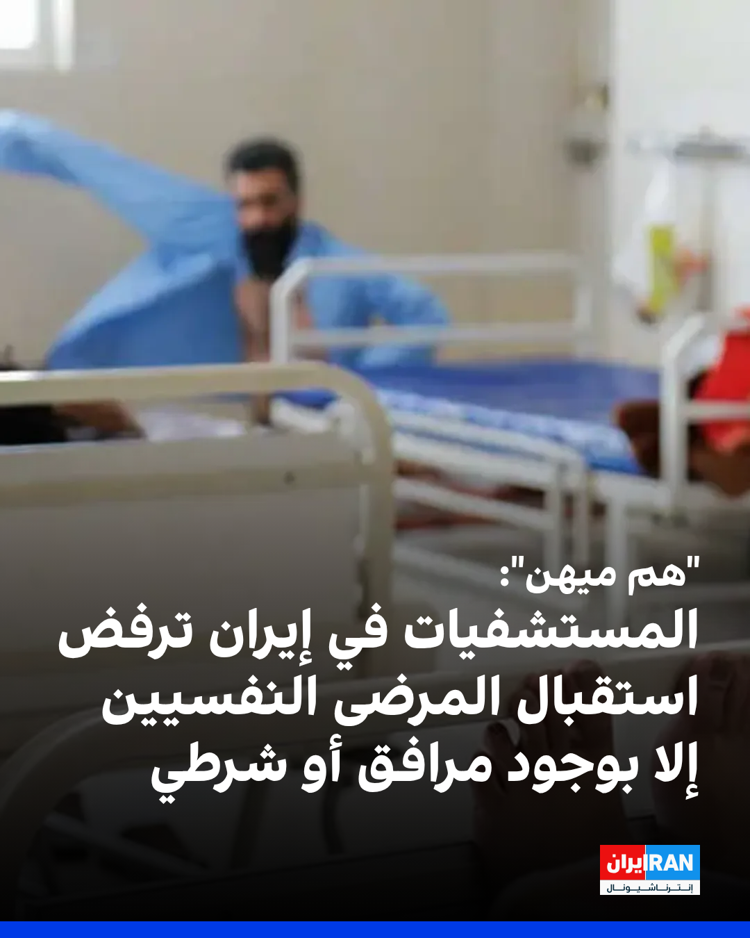 ذكرت صحيفة "هم میهن" الإيرانية، في تقرير بعنوان "متروكون في المستشفى"، أن المستشفيات في إيران ترفض استقبال مرضى الاضطرابات النفسية، ما لم يكونوا برفقة أحد ذويهم، وحتى أقسام الطوارئ لا تقدم لهم الخدمات إلا بوجود عناصر من شرطة "110" في الموقع.