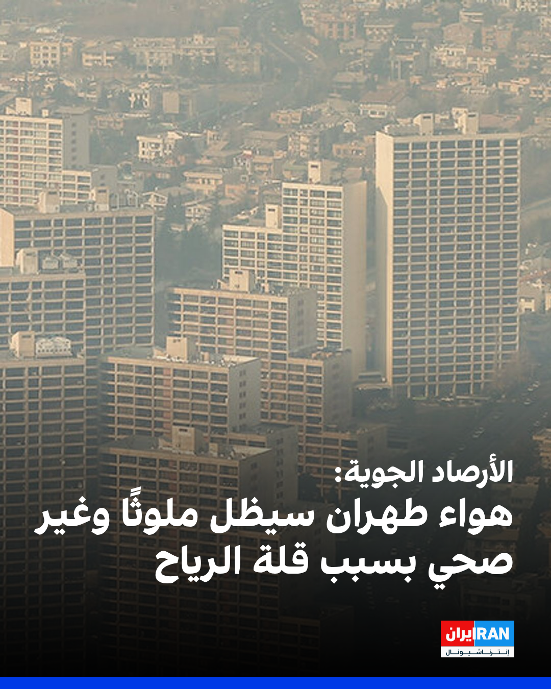 أعلنت الهيئة العامة للأرصاد الجوية في طهران أنه جودة هواء العاصمة الإيرانية ستنخفض خلال الأيام المقبلة، بسبب قلة الرياح، وسيبقى ملوثًا وغير صحي في المناطق المزدحمة.
