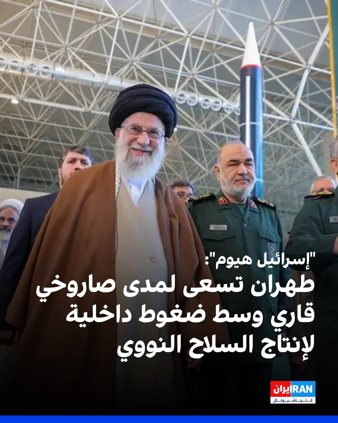 وأشارت "إسرائيل هیوم" إلى تصريحات حديثة لعلي شمخاني، الأمين السابق لمجلس الأمن القومي، قائلة إن "الحديث عن تطوير صواريخ عابرة للقارات ترافقه ضغوط متزايدة داخل النظام للموافقة على إنتاج السلاح النووي".