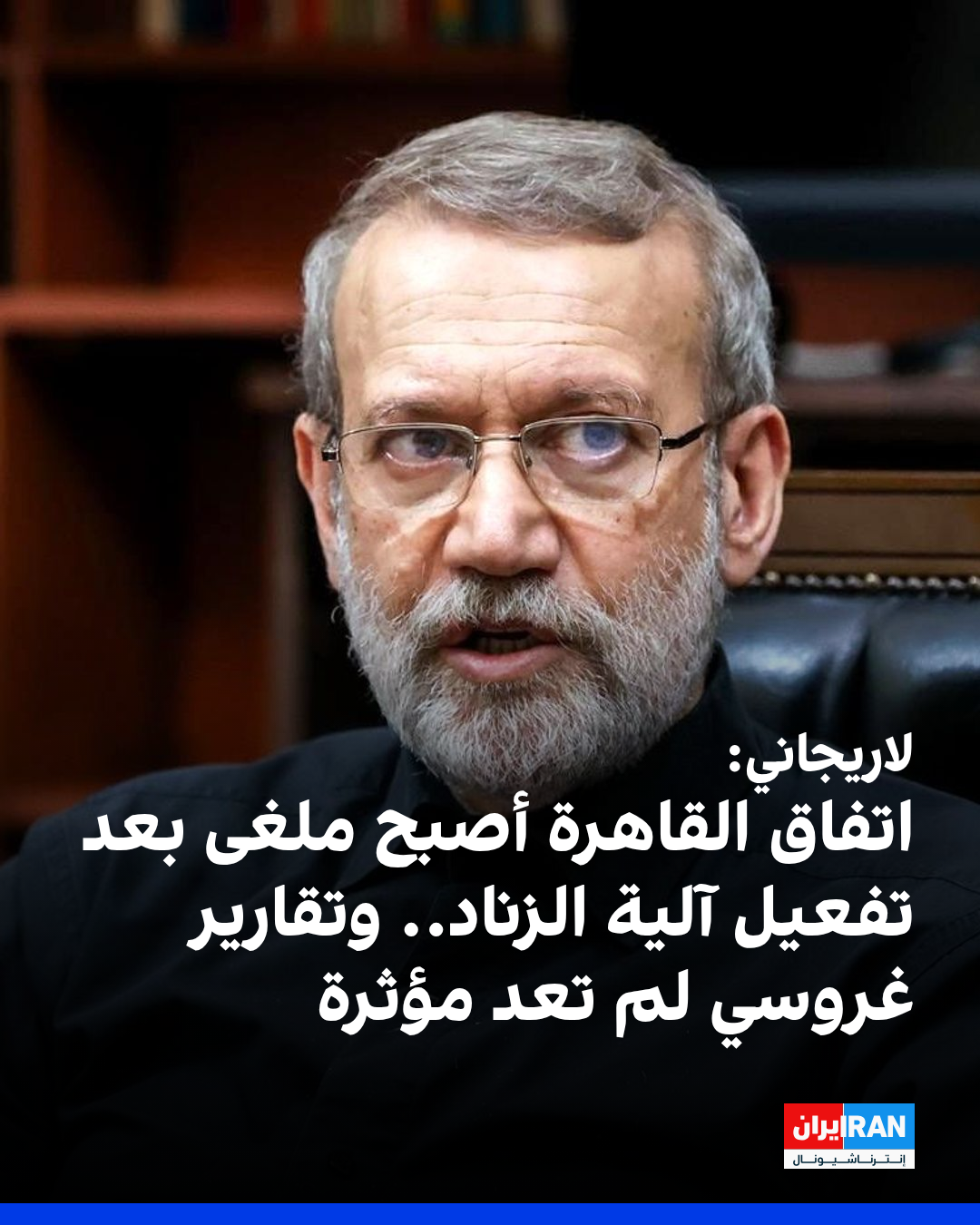 وأضاف لاريجاني: "كما أشار عباس عراقجي سابقًا، إذا تم تفعيل آلية الزناد، فستعيد إيران النظر في اتفاق القاهرة، وقد حدث ذلك بالفعل وأصبح الاتفاق ملغى، رغم أنهم كانوا لا يريدون تفعيل الآلية".